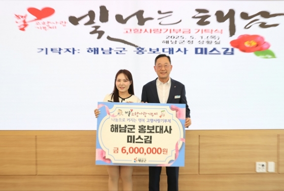 가수 미스김이 '해남군민의 날'을 맞아 해남군에 600만원을 기부, 고향 사랑을 실천했다.